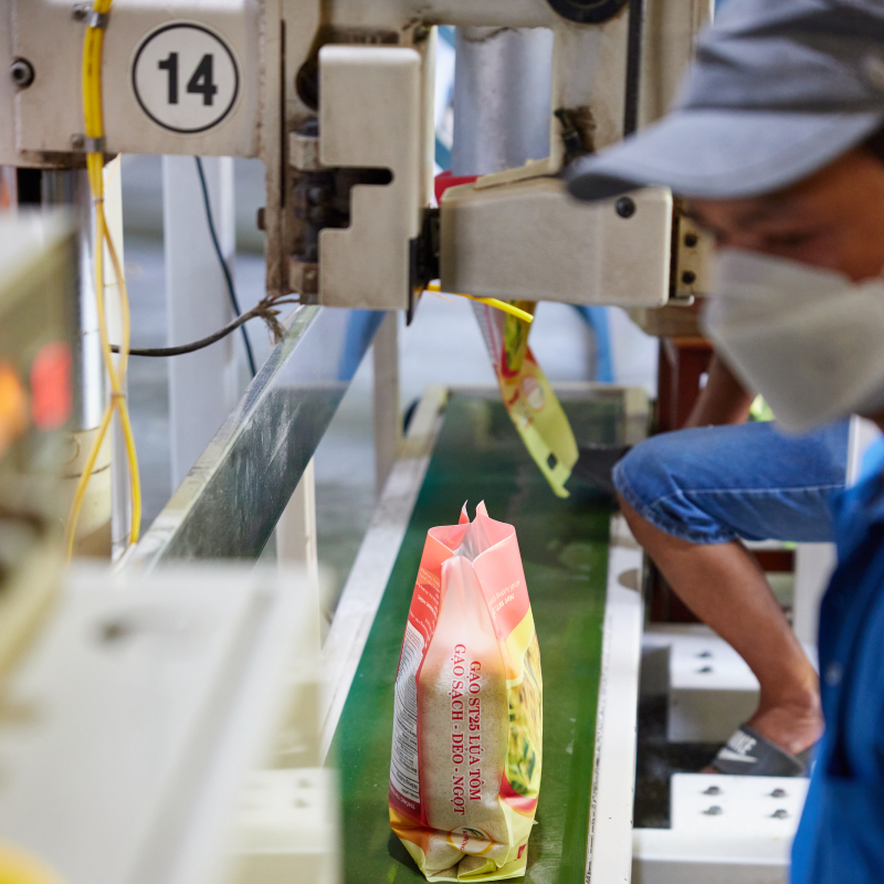 Để đảm bảo gạo đến tay người tiêu dùng luôn mới như vừa mới gặt, gạo cần được đóng gói cẩn thận cẩn thận ngay khi sản xuất xong. Các loại bao bì đóng gói phải đảm bảo tiêu chuẩn vệ sinh an toàn thực phẩm trước khi đóng gói. Quá trình đóng gói sẽ tiến hành trong phòng máy lạnh để tránh lây nhiễm.